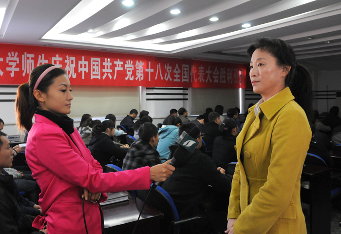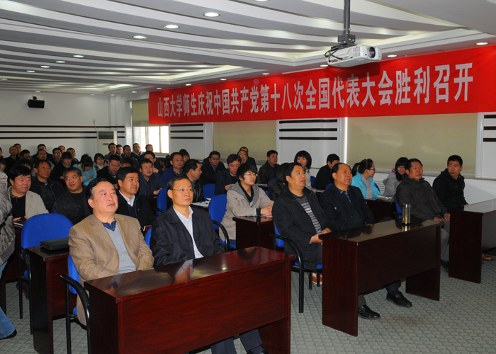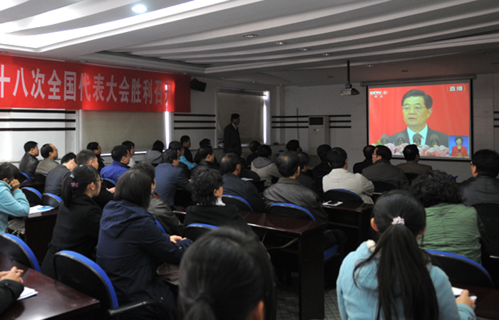 11月8日,校领导、机关党委中心组成员及部分学生在文科楼九层大会议室收看了党的十八大开幕式。