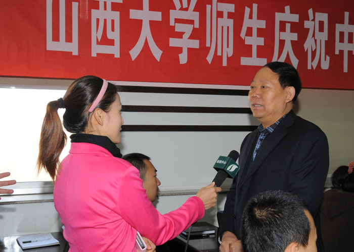 上午8:50,按照规定时间,机关党委中心组成员及初民学院部分学生提前来到了文科楼九层大会议室,等待收看党的十八大开幕式。临近9时,校领导秦良玉、贾锁堂、赵怀洲、李思殿、刘维奇、杨军陆续来到现场,准时收看了党的十八大开幕盛况。收看过程中,校党委书记秦良玉、机关党委书记任浩及部分师生接受了山西卫视的采访。大家都对十八大寄予厚望,表示要在党的正确领导下,走中国特色的社会主义道路;希望国家昌盛,人民富强;希望山西大学能有更好的发展前景并预祝十八大胜利召开。