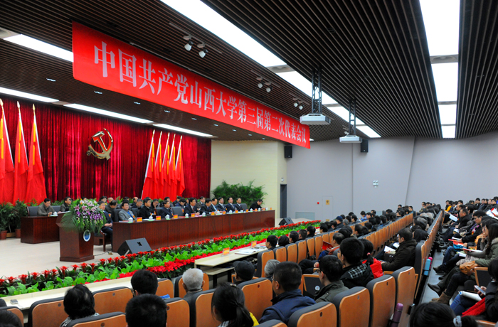 在举国上下深入学习宣传贯彻落实党的十八大精神之际,为凝聚全校党员和广大师生的智慧力量,团结一致共同谋划我校转型跨越的新蓝图,加快建设区域特色鲜明的高水平研究型大学,11月30日至12月1日,我校隆重召开第三届第二次党员代表大会。满怀对学校改革发展的神圣使命和对学校美好未来的无限憧憬,全校227名党员代表参加大会,听取和审议了中国共产党山西大学委员会工作报告,讨论并通过了《中共山西大学委员会关于深入贯彻落实十八大精神进一步加强和改进党的建设的意见》。全校上下进一步明确了全面提升综合实力、加快建设“有特色、高水平”大学的宏伟目标和战略部署,进一步形成了把握机遇,真抓实干,兴校强省的广泛共识和高昂士气。