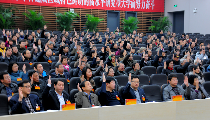 校党委书记秦良玉代表中共山西大学委员会作了题为《抓住发展机遇 提升综合实力 为建成区域特色鲜明的高水平研究型大学而努力奋斗》工作报告。报告强调,会议的主题是高举中国特色社会主义伟大旗帜,以邓小平理论、“三个代表”重要思想、科学发展观为指导,全面贯彻落实党的十八大精神,积极落实教育规划纲要,主动适应山西转型跨越的战略需求,进一步凝聚全校师生的智慧和力量,抓住机遇,改革创新,强化特色,提高质量,为加快建成区域特色鲜明的高水平研究型大学而努力奋斗。报告回顾了第三次党代会以来,学校各项事业取得的新进展,学校党的建设开创的新局面,特别是近期开展的重点工作。报告清醒客观地分析了工作中还存在的问题和不足,高度凝练地总结了两年探索实践的经验和认识,全面深刻地指出了学校今后发展所面临的形势和任务,强调全面提升综合实力,已经成为国家和省委省政府赋予山西大学的新使命,成为全体党员和师生义不容辞的共同责任,成为我们必须回答好的首要问题。报告指出,学校集中集体智慧制定的提升综合实力规划,绘就了学校2012年—2015年的美好建设蓝图。学校发展的指导思想和奋斗目标是:全面贯彻落实党的十八大精神,以邓小平理论、“三个代表”重要思想、科学发展观为指导,积极落实教育规划纲要,主动适应山西转型跨越的战略需求,坚定不移地走以提高质量为核心的内涵式发展道路,加快推进学科专业结构的优化,全面推进人才培养模式的改革,稳步推进内部治理结构的完善,深入推进政产学研用的结合,统筹推进各类人才队伍的建设,大力推进文化传承与创新,继续推进党的建设工作,凝聚师生力量,显著提升学校的综合实力,在新的起点上努力建成社会更为满意的人才高地、贡献更为卓越的创新基地、辐射更为广泛的教育要地,力争早日建设成为区域特色鲜明的高水平研究型大学。为调动一切积极因素,实施好规划项目,完成好规划任务,报告做出八项部署:必须进一步解放思想、更新观念,始终保持昂扬向上的精神状态;必须优化学科专业结构,构建特色鲜明的学科专业体系;必须深化教学改革,创新人才培养模式;必须推进科研创新和文化建设,提高对区域经济社会发展的支撑度和贡献度;必须弘扬百年传统,形成具有山大特色的文化品牌;必须积极开发人力资源,汇聚更多的优秀人才;必须建立和完善现代大学制度,创新学校内部管理机制体制;必须加快建设新校区,形成新老区功能互补、有机衔接的新格局。报告专章部署了学校党的建设工作,强调党的十八大为加强和改进新形势下党的建设进一步指明了方向,我们要紧紧抓住坚持和发展中国特色社会主义这条主线,牢牢把握社会主义办学方向,以改革创新精神不断推进党的执政能力建设、先进性建设和纯洁性建设,推进学习型、服务型、创新型党组织建设,进一步把党建优势转化为提升办学治校能力的优势,把党建资源转化为提升干部和教师素质的资源,把党建成果转化为提升学校综合实力的成果,确保学校始终沿着正确的方向实现又好又快发展。报告同时部署了今后学校党建工作的八项重点:全面贯彻落实十八大精神,开创学校科学发展的新局面;加强理想信念教育,坚守共产党人的精神追求;认真执行民主集中制,增强党的创造活力;创新选人用人机制,打造一支优秀的党员干部队伍和人才队伍;落实党建工作责任制,激发基层党组织的活力;切实改进工作作风,始终保持与师生员工的血肉联系;统筹好育人环节,全面促进学生成长成才;坚持惩防并举,扎实推进反腐倡廉建设。报告号召全校师生员工,紧密团结在以习近平同志为总书记的党中央周围,在省委省政府的正确领导下,在省高校工委省教育厅的关心指导下,以更大的勇气和智慧,以更多的责任和担当,全面把握机遇,显著提升实力,为加快建成区域特色鲜明的高水平研究型大学而努力奋斗。